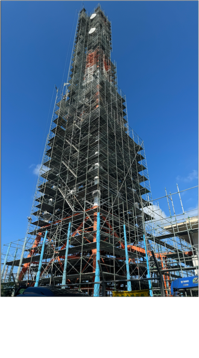 電気を通さない特殊素材(※FRP/カーボン系)の足場を使用し、電波塔など高度な安全性が求められる現場にも対応。